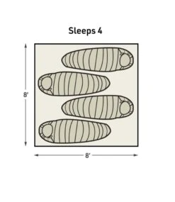 - Tent floor dimensions: 8′ x 8′.