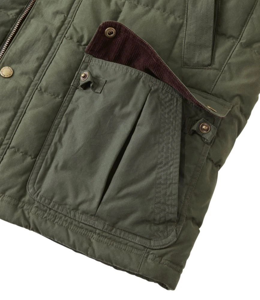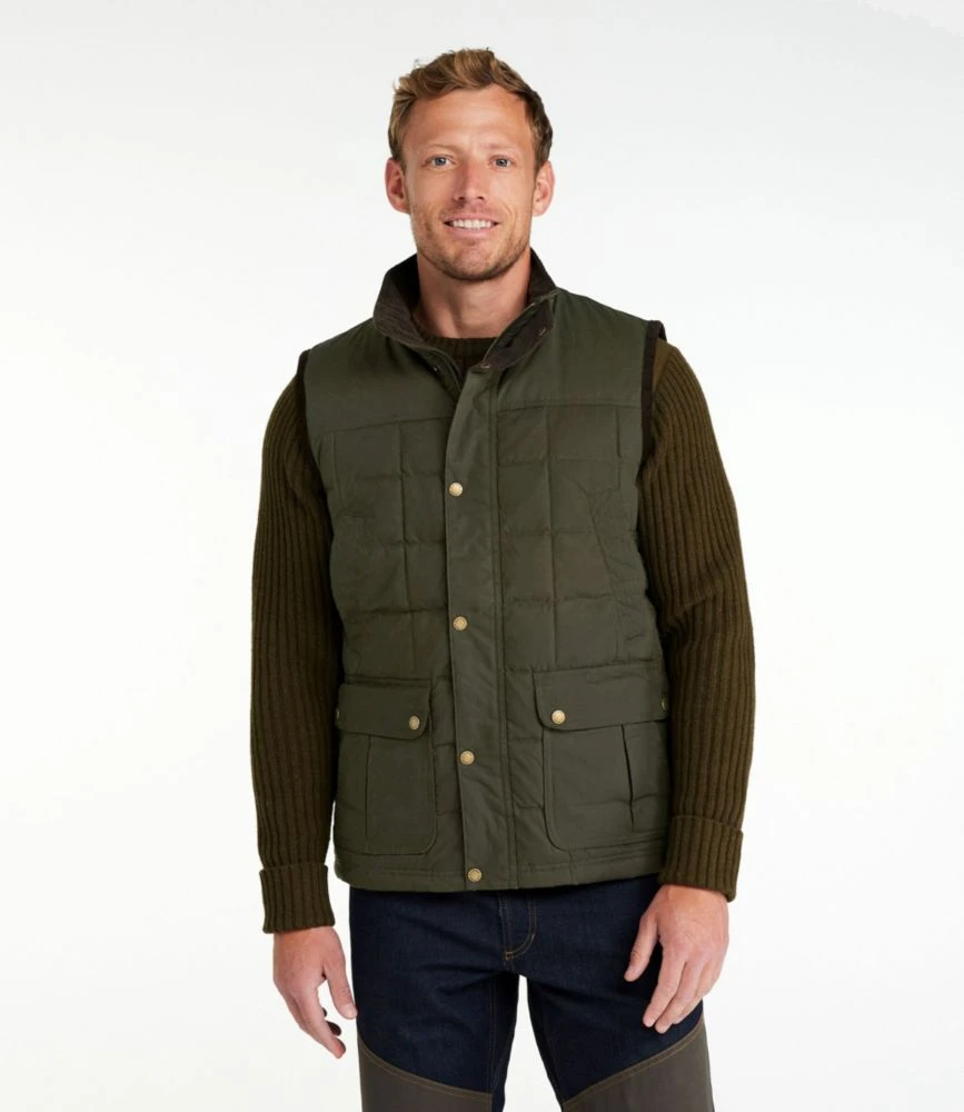 Our Waxed Cotton Down Vest is now 21% lighter and features revolutionary water-repelling DownTek down.